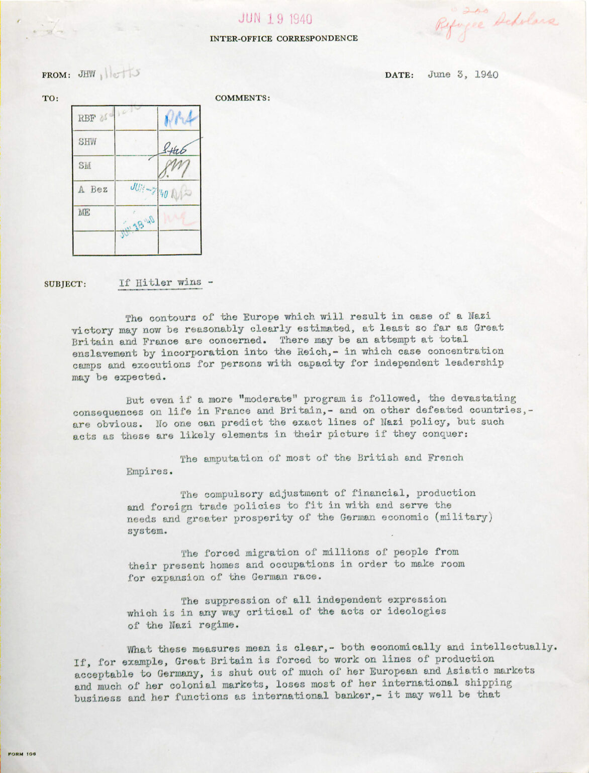 - Joseph H. Willits, “If Hitler Wins,” June 3, 1940